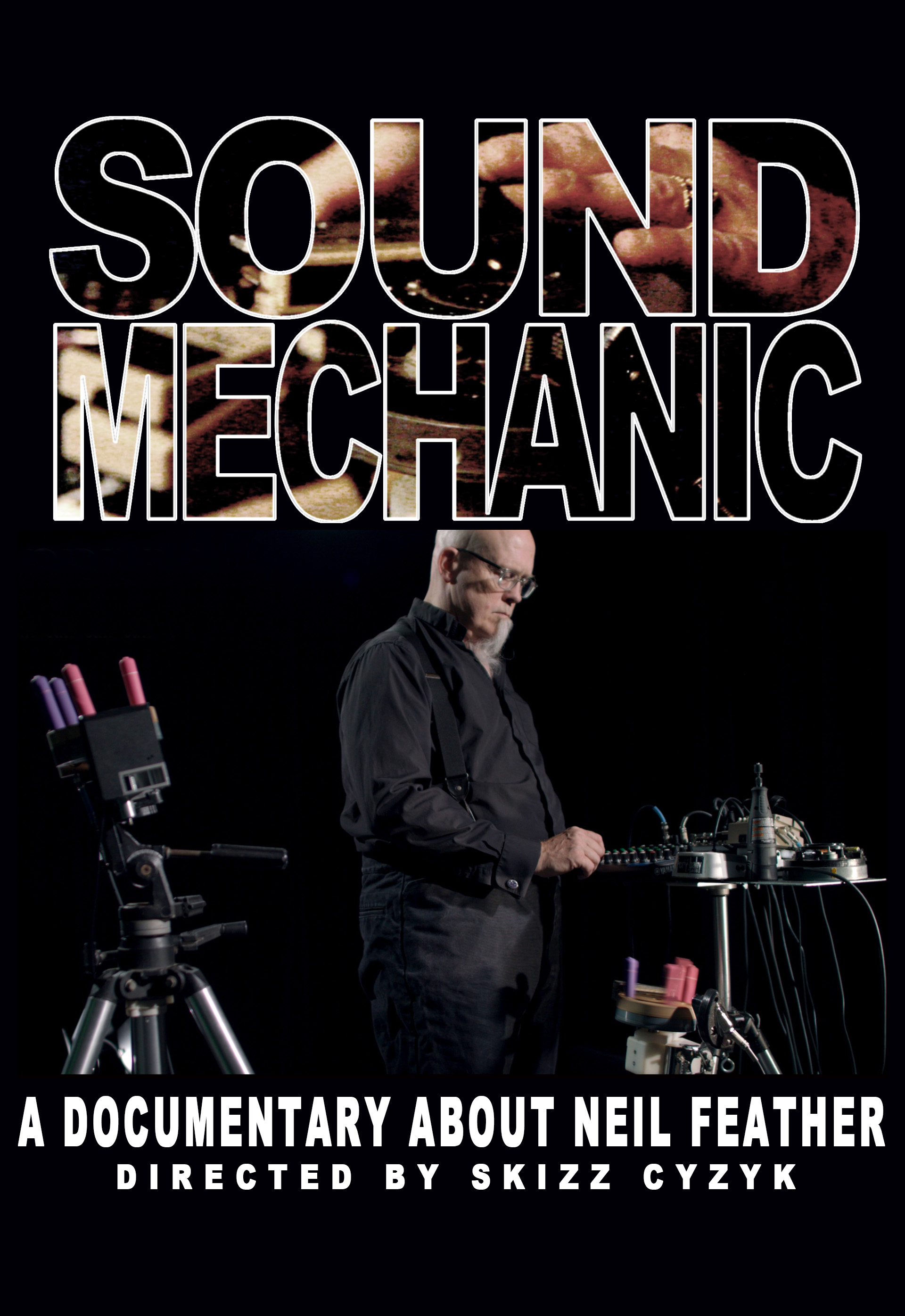 Without relying on conventional documentary techniques like archival footage and talking-head interviews, Skizz Cyzyk’s observational documentary, Sound Mechanic, introduces the audience to Neil Feather’s unusual perspective on music, the unique instruments he has invented, and the creative process. Cyzyk invites the audience to observe Feather performing solo as well as collaborating with a variety of vocalists and instrumentalists, and demonstrating his instruments, such as the Wiggler, Vibrowheels, Anaplumbs, the Contraction, and the Former Guitar, many of which were created using found objects like bowling balls, bicycle parts and sex toys.