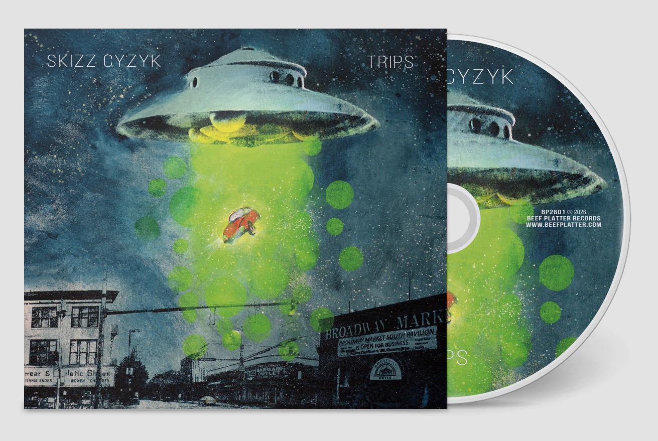 BP2601 - SKIZZ CYZYK - TRIPS CD This is a remixed, remastered, renamed and repackaged 2026 reissue of the Eskay Izezy album, Trips Vol. 1 & 2 (BP1501). Recorded mostly in airports and hotel rooms, with sounds generated from free smartphone apps. |